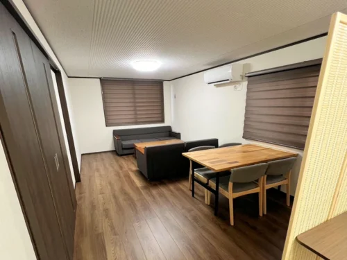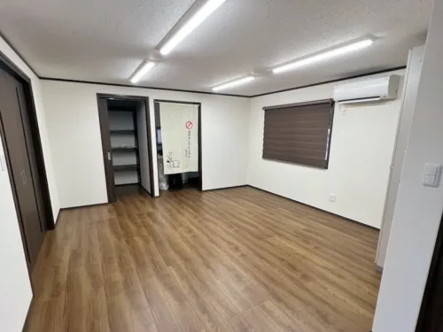 中古プレハブとは思えない高機能空間が完成しました。 内装には高性能断熱材とペアガラスを採用し、四季を通じて快適な環境を実現。 最新のトイレ・キッチンを完備。 大量の書類も収まる書庫も新設。