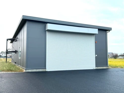 【平屋30坪・シャッター付】 資材や製品の搬入がスムーズ! 1階建て30坪のプレハブ倉庫は、車両の横付けが楽で、作業効率を最大化します。 大きなシャッター付きで、フォークリフトでの搬入出もストレスフリー。 低コスト・短工期ですぐに使えるため、急な在庫増加や事業拡大に最適です。確実なセキュリティで大切な資産を守ります。